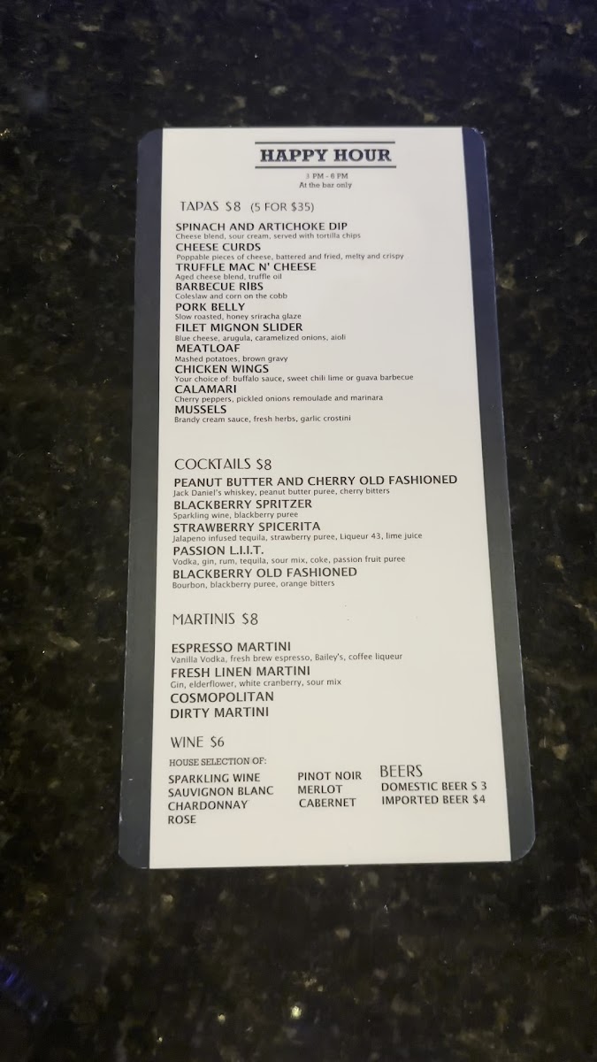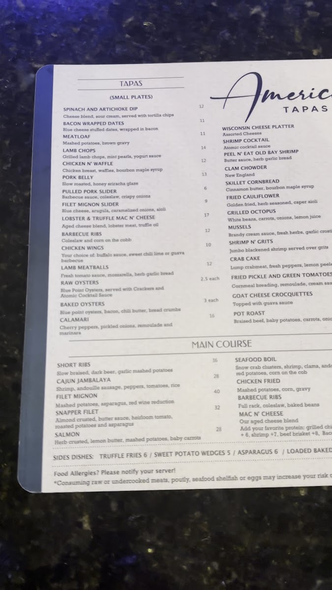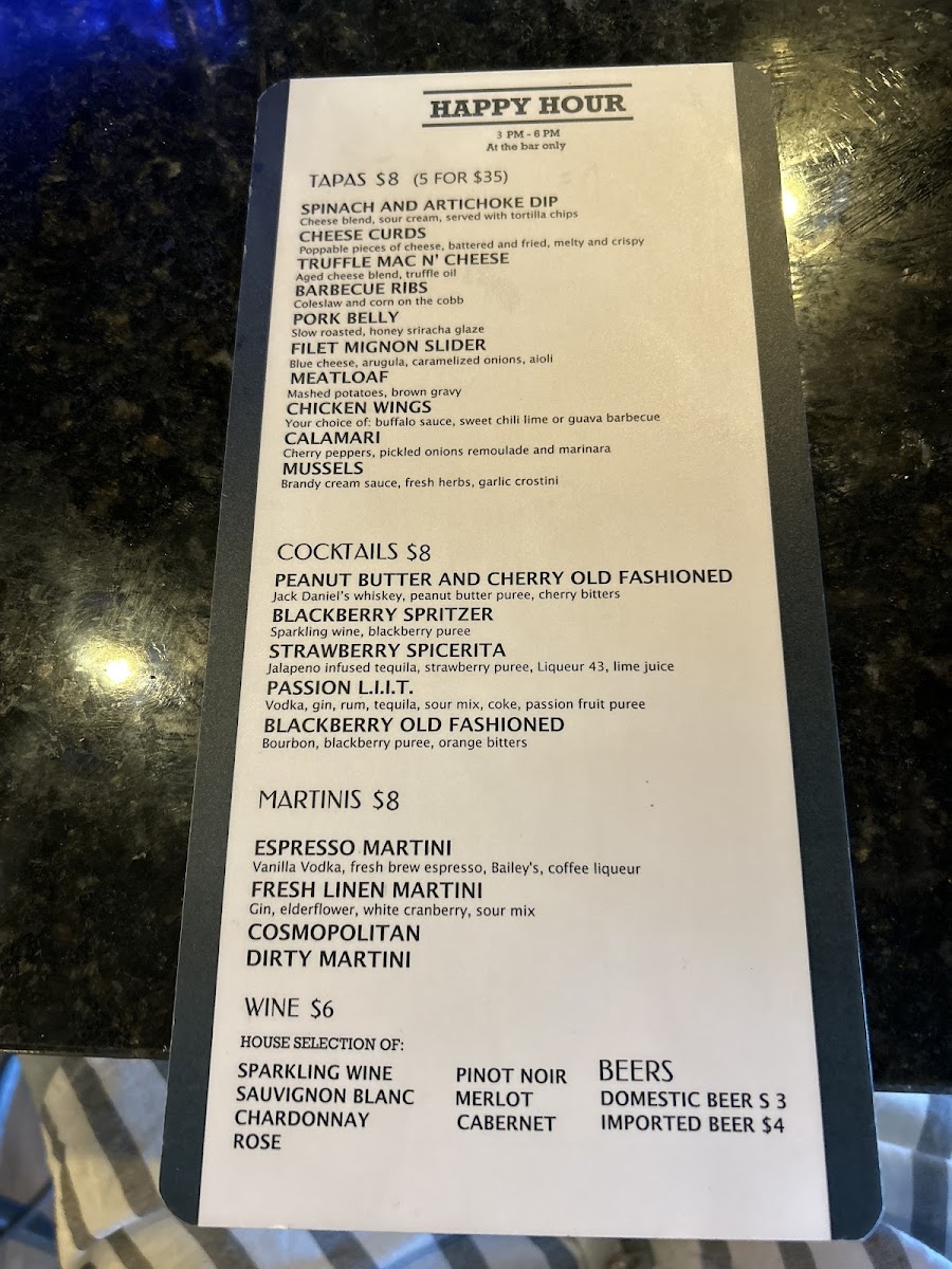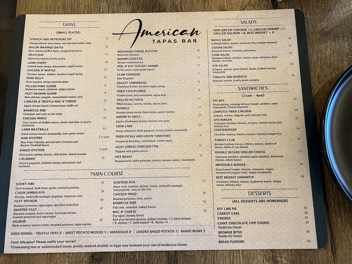 The American Tapas Bar Menu offers a unique twist on traditional tapas, blending bold flavors with fresh ingredients to create an unforgettable dining experience. Located at 2724 E Commercial Blvd, Fort Lauderdale, FL, this cozy spot invites guests to indulge in a variety of small plates that are perfect for sharing. From savory bites like crispy calamari and zesty shrimp cocktails to sweet treats like churros with chocolate dipping sauce, there's something for every palate. The menu focuses on comfort food with a creative flair, offering options for both meat lovers and vegetarians alike. Whether you’re here for a casual bite or a night out with friends, the American Tapas Bar provides a laid-back atmosphere that encourages a fun and social dining experience.